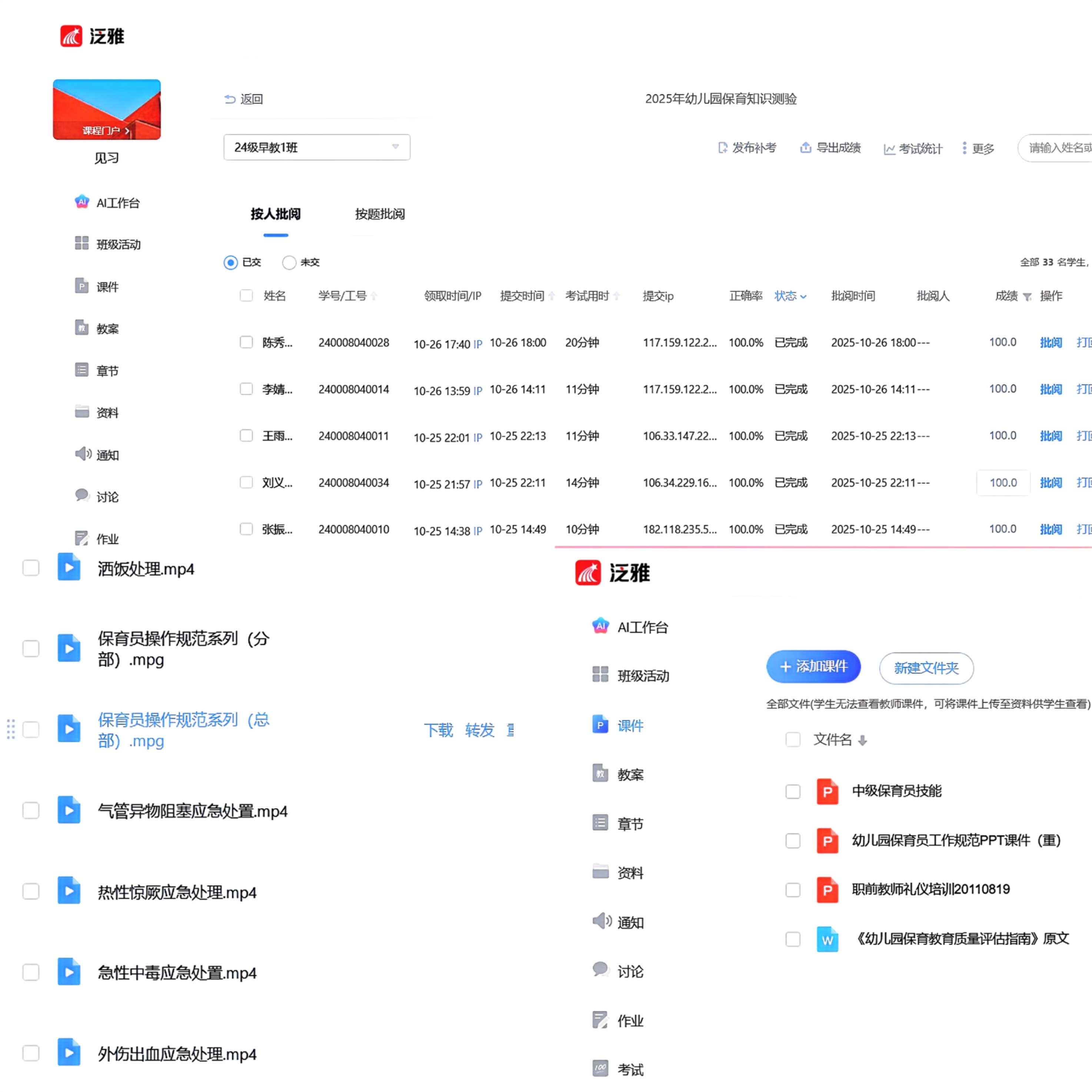召开专题动员会,明确教育见习作为专业必修课的学分要求与考核标准;见习生通过“学习通”平台完成学前教育政策与法规、教师职业礼仪、实操技能等线上课程与保育师知识测验,获取实践“许可证”。从《幼儿园保育教育质量评估指南》到保教实操视频,学生带着明确的观察工具和理论框架进入现场。