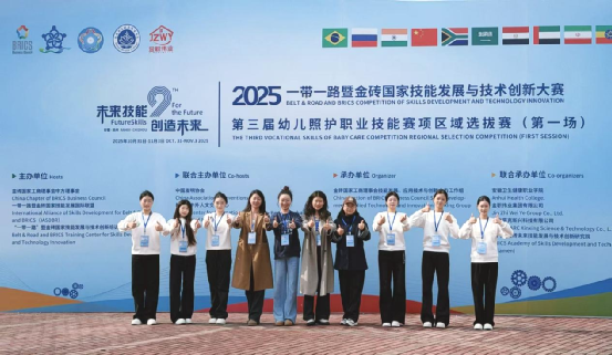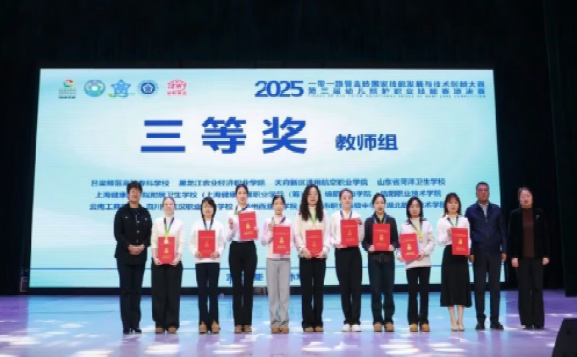 随后,在更具国际视野的2025一带一路暨金砖国家技能发展与技术创新大赛幼儿照护赛项全国总决赛中,张珂老师与辛珺、李楠老师组队代表河南省出战教师组比赛。该项赛事旨在搭建技能发展与国际合作平台,对接世界技能大赛标准,竞争极为激烈,吸引了全国一百多支职业院校队伍参与角逐。最终,教师团队荣获全国总决赛三等奖,标志着我院在该领域的教学与实践能力已达到国内先进水准。
